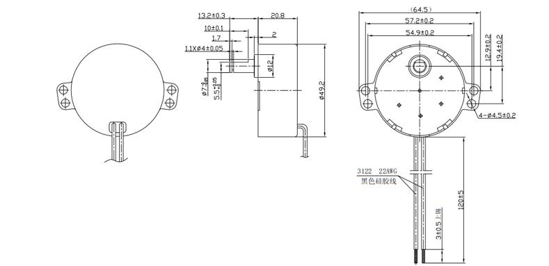9.噪 音 ≤40dB 10.温 升 ≤65K 11.转动方向 逆时针 12.绝缘等级 应用范围:过胶机、3D循环扇、电暖器、舞台灯、壁炉、宠物投食机等